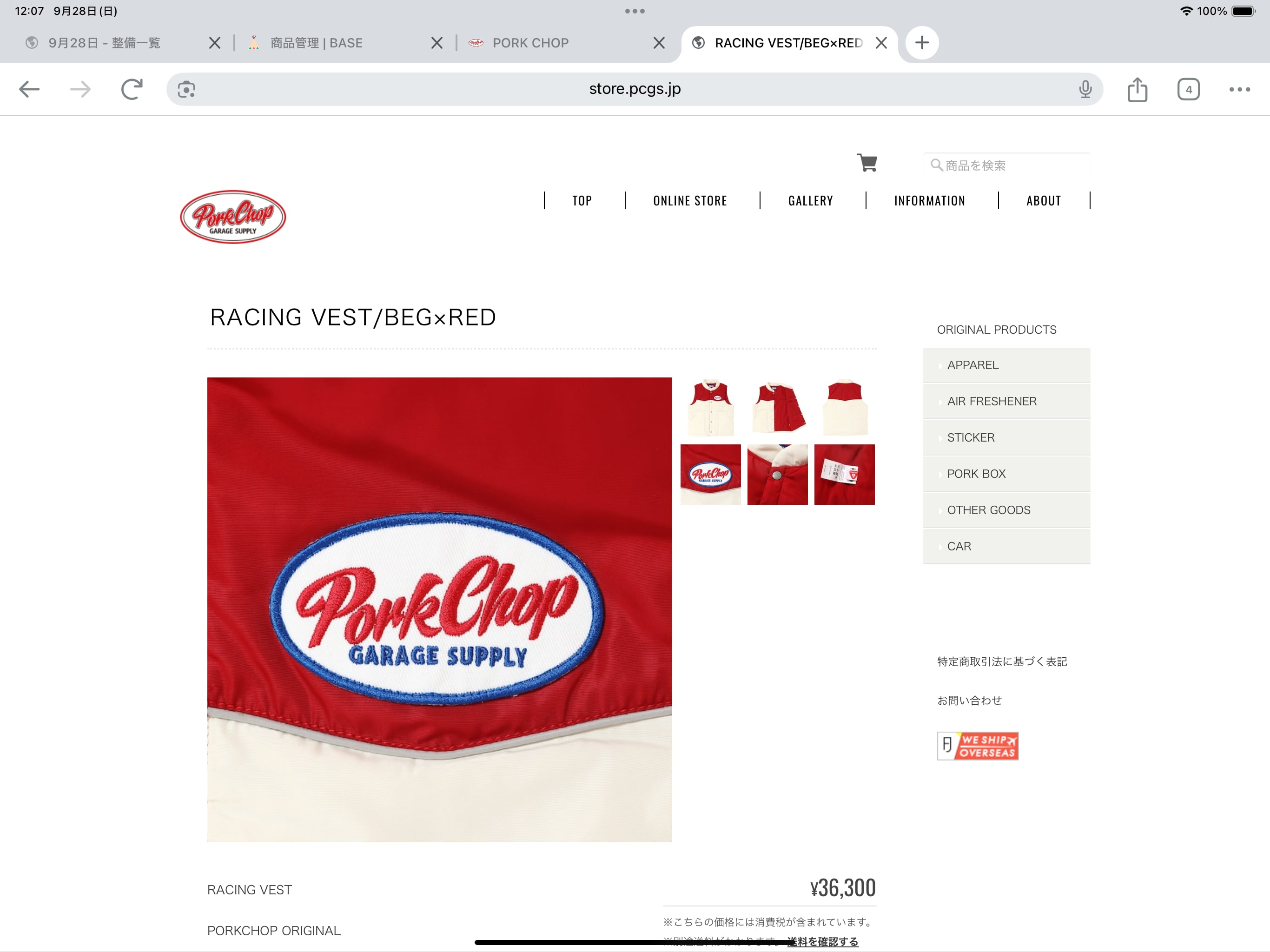 【PORK CHOP】RACING VEST/BEG×RED